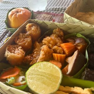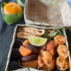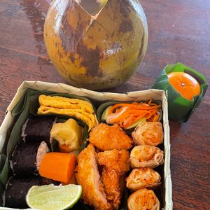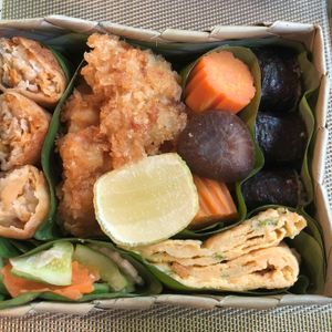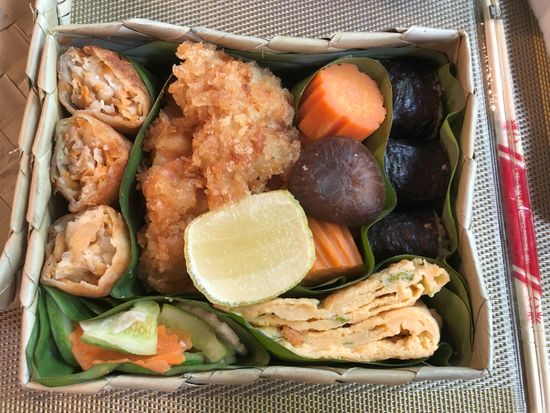 プラ容器に入ったコンビニ弁当みたいなのを想像してたら、容器も可愛いし、具材もお寿司におかずがいっぱい!美味しかったです。