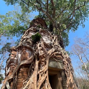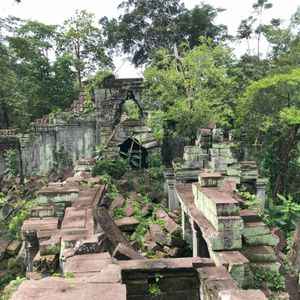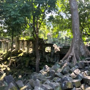 まず最初にプレアビヒアに行きましたが朝早く、暑さも回避できて人もいないためほぼ私たちグループの貸切で写真も綺麗に撮れました。自然と遺跡が共存していて美しく、鳥の鳴き声も聞こえてまさにラピュタの世界観でした。乾季のため緑ぽくはありませんでしたが十分綺麗でした。雨季になると色が全然違い、さらに美しいそうなのでまた来てみたいと思う素晴らしい遺跡でした。ベンメリアはシェムリアップでの観光した遺跡で一番感動したくらい印象的でした。