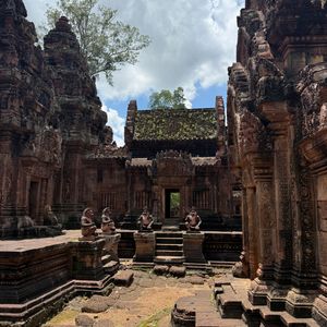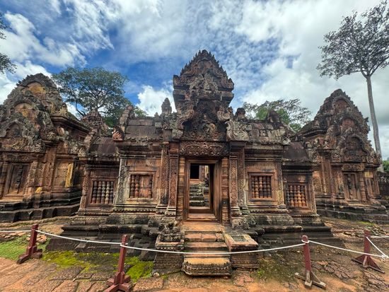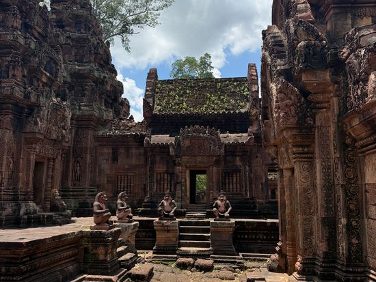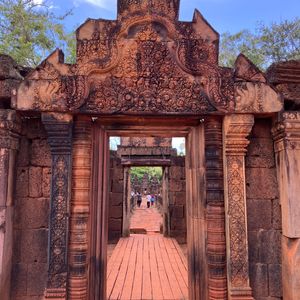 遺跡は大変美しく、次回来た際にはもう少しゆっくり見たいと思いました。ベンメリアは木がたくさんあるので、木陰は涼しく見学しやすかったです。歩道や手すりが整備されていて見学しやすいです。段差はあります。バンテアスレイは木陰がないので、大変暑いですが、それほど混雑していなかったので、日傘がさせました。雨季でしたがカンカン照りで暑かったですが、歩いての観光なので、雨ならば大変だっただろうなという感じです。ベンメリアは本当にきれいなのでおすすめスポットです。