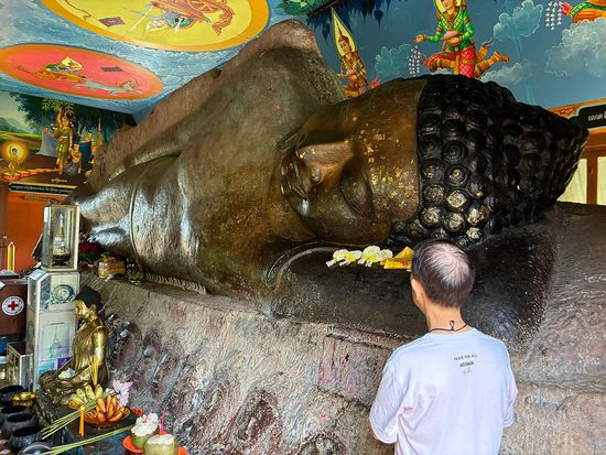 朝7時、ホテル出発という旅程。毎朝、ガイドのポーさんは出発時刻10分前にはホテルロビーで待ってくれている。ありがたい。時間が無駄なく出発できる。今日はまず山登りから。1時間弱で川底、川岸に彫られた彫刻群を楽しむ。これが乾季なら、川底の彫刻もしっかりみることができるのだろうが。まぁ、仕方ない。駐車場までもどり、プノン・クーレンへ。16世紀に彫られたプリア・アントンの涅槃仏を鑑賞して、大滝へ。水浴びしている欧米人の姿も。本日の最後はロリュオス遺跡群。見ごたえのある遺跡だった。早朝からのツアー、帰路の車中はうつらうつら。充実した一日ではあった。