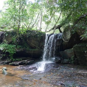 当日まで何人のツアーになるか分からないとのことで、お盆前の日本人が少ない時期ということもあり、私一人のプライベートツアーになりました。事前に体験談を読み、クバールスピアンは「とにかく歩く、暑い、ガイドさんについていくのに必死」、というイメージでかなり覚悟して行きましたが、猛烈な想像をし過ぎたためか、思ったより平気でした。ガイドさんにも「大変なんでしょ?」と聞くと「大変なのは2か所だけ」とのことで、実際に足場が悪い、急な階段や岩場を登るのは2か所、あとはわりと緩やかな斜面を上る感じです。ガイドさんは数日前に75歳のおばあちゃんを案内したそうです。虫よけしていたにもかかわらず蚊に刺されたことの方が辛かったです…。まだ雨が少なく、水量が少なかったのは残念でしたが、こればっかりは運ですね。お昼は雨が降っていたため、ふもとの食堂に間借りしてのお弁当でした。お弁当は工夫された献立でしたが、個人的にはガイドさんたちのように食堂のごはんを食べたかったです。