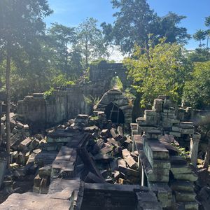 ガイドブックに載ってたベンメリアのナーガ像はなんと倒れてしまってありませんでした。崩れ落ちそうな石に木のつっかい棒で気持ち程度補強しているところもあり、ガイドさんによると、どんどん破壊が進んでいるそうです。今回見た遺跡が数年後変わってるんだなと思うと感慨深かったです。バンテアイスレイは小さくて美しく、最も印象に残りました。観光客が比較的少ないのもいいです。