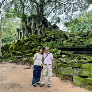 歴史的価値のある世界遺産であると共に、カンボジアの自然と一体化した大地の遺産とも感じられました。エキサイティングな一日でした。この素晴らしい一日を過ごすことができたのは、サクさんのお陰です。遺跡の丁寧な説明で一層理解が深まりました。また、写真の絶景ポイントを熟知されていて、たくさんの素敵な写真を撮ることができました。写真撮影にも慣れていて、パノラマ撮影やビデオまで、いろいろな方法で撮っていただけました。(実はシンプルな写真が一番思い出に残りました。また、技巧を凝らした撮影は消耗が大きく充電残量がかなり心配でしたが...)プレアヴィヒアへ向かう山道を4WDで疾走したのがものすごくスリリングで爽快でした。天然アトラクションという感じで、しっかり手すりを握りしめていました。プレアヴィヒアの断崖絶壁からタイを眺めた時も、同じようにスリリングでした。こちらは手すりも柵もないので、サクさんに誘導していただき恐る恐る間際まで行きました。広大な大地の眺望が素晴らしく、大パノラマを写真にも残すことができ、行って良かったと心から思えました。サクさんから事前に、暗くなる前にシェムリアップに帰らないと道が真っ暗になり運転が危険だと伺っていたので、少し焦ってしまい、もう少ししっかり見ておきたい所があったのですが、お願いするのを躊躇してしまいました。かなり明るいうちにホテルに到着しましたので、ちょっと後悔しました。2時間で帰れるので、しっかり心残りのないように見ておけばよかったと思いました。まあ、それは自分の非でもあるので、悪しからず。兎にも角にも、残ったのは素晴らしい記憶ばかりで、本当に良いツアーに出会えたと感謝しています。ありがとうございました。