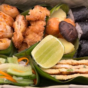 お弁当は全く期待していませんでしたが、これがまた美味でした。天然の素材で編んだお弁当箱に中の仕切りも何かの葉で作られていました。海苔巻き、卵焼き、から揚げ等、日本人の口に合う本当に工夫されたお弁当でした。感激しました。