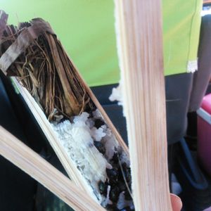目的地に行く車中、カンボジアのお酒やお菓子について質問したところ、日本でいうとおはぎ、もしくは甘いお赤飯のようなおやつを買う為に、車をとめてくださいました。(道端でお姉さんが屋根もない所で商売していて^^)カンボジアでしか味わうことのできない珍しいおやつを戴くことが出来ました。