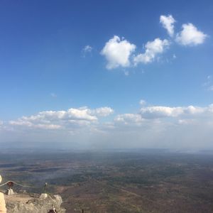 山頂からの景色、空が青く麓まで見渡すことのできる素敵なお写真ですね!