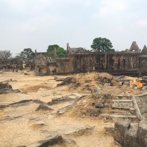 シェムリアップから車で走ること3時間。プレアヴィッヒア。ガイドブックに載っているカンボジアの広大な青々とした風景が見れると期待してたけど、2月は乾季でしたので期待外れでした。何箇所かで野焼きの延焼で草むらが燃えて煙か上がり景色が霞んで見えました。ベンメリア寺院も上に同じく雨季の方が緑が青々とし絵になるようです。なので、この時期は緑が少なくガイドブックとはイメージが少し異なります。ガイドさんの話によると中国人と日本人が主な観光客。旅程通りに行くとベンメリアが最初ですが午前中は中国人ばかりでゆっくり見れないとのこと。旅程変更でプレアヴィッヒアに先に行きました。時間がある人には、このコースに参加されたら良いかもしれませんが短期間の方はアンコールエリアを重点的に回られた方が賢明かな?と感じました。小さい子連れに3時間の車移動と、プレアヴィッヒアの観光はきついかもしれません。