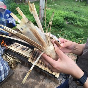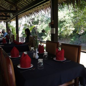 昼食はストゥントロチアという川沿いのレストランで、バナナの葉入りサラダ等を食べました。2人で3皿のセットメニューでしたが、人数が増えると、一皿の量が増えるのではなく、品数が増えるようでした。どの料理も美味しかったし、トイレも綺麗でした。