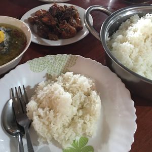 バンテアイスレイとベンメリアの間に昼食をとる予定でしたが、お腹がすいて無かったので両遺跡見学後に昼食をとるよう予定を変更してもらいました。ガイドさんが、何度も「お腹がすかないですか?大丈夫ですか?」と心配してくれたのが印象に残っています。料理は、辛くもなく日本の味付けに似ていました。特にタマネギの入った酢豚のような料理が美味しかったです。