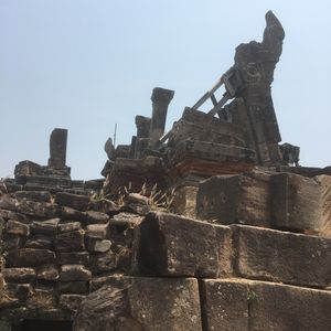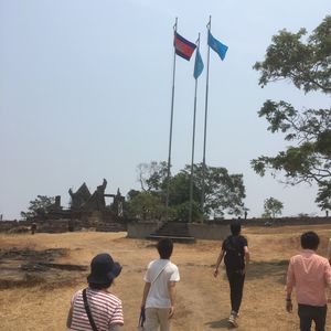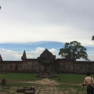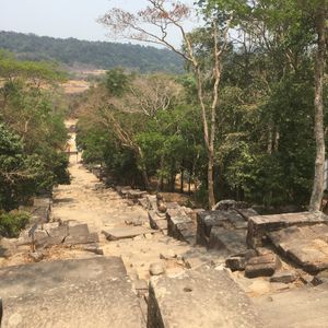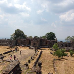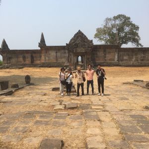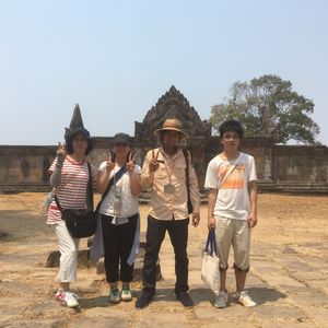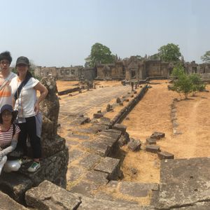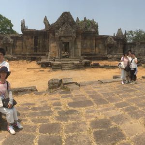 今回は母と2人で参加し、1人旅のお兄さんと計3人でのツアーとなりました。朝ホテルに迎えに来てもらい、約3時間かけてプレアヴィヒアへ向かいます。1時間くらい走ったところで車の故障というハプニング。エンジンも止まり暑い車内の中でしたが、待ってる間にガイドさんがどこからかフルーツを買ってきてくれて食べたりそれもまた忘れられない思い出となりました。車は2台目を呼んで無事到着。途中トイレ休憩の場所にはコンビニがあり水も買えます。着いたら4WDの荷台に乗り更に上に進みました。降りたところの休憩場所でお弁当を食べます。そこからは歩くか、バイクに乗ることもできるということでバイクに乗りました。これがすごかった。かなりでこぼこの道を地元の男の子が難なく運転していきます。すごい技術にビックリしました。アトラクションみたいで面白かったです。頂上に着くと一面の絶景が広がっており感動しました。遠いですが、見に来る価値ありです。帰りは遺跡をみながら歩いて降りて行きました。ガイドさんは遺跡の説明や写真をたくさん撮ってくれました。充実したツアーで参加してよかったです。