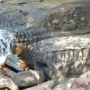 でも、雨季も水量が多くて濁っていると、まったく見えないというし、最適な季節って短いみたい。乾季は彫刻がはっきり見えるし、川底に降りて、滝の前まで行けるので、これはこれで楽しいです。この状況を知った上で、雨季にまた来てみたい。