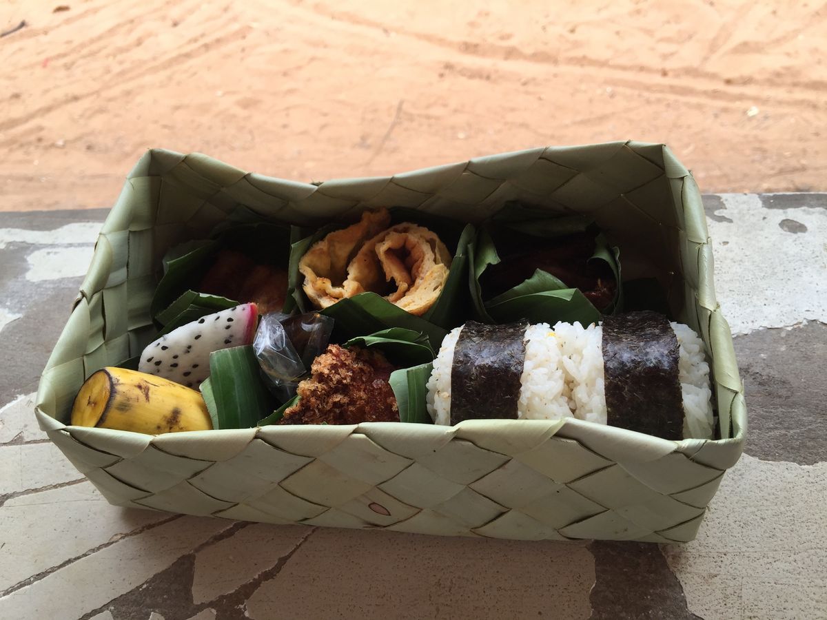 お昼ご飯はカンボジアの食べ物等で作った、日本風お弁当。これがメチャクチャおいしかった!なんだかわからない物を頼んで失敗しないで済みました。日本風なのにしっかりカンボジア、っていうのが良かった。