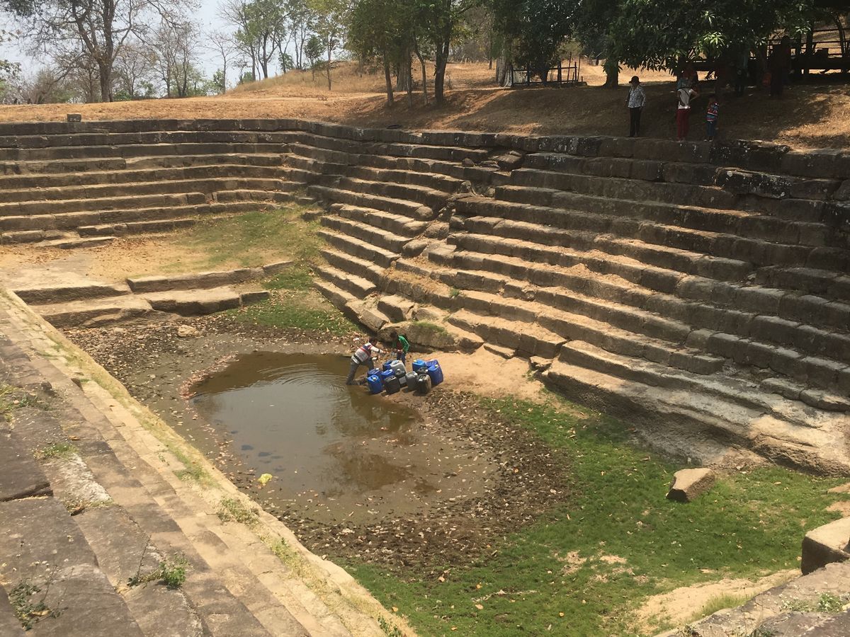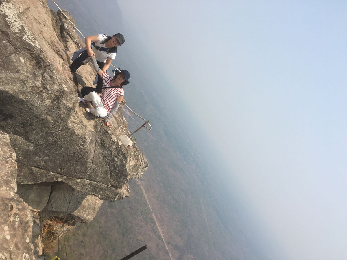 クバールスピアンは片道30分位の山登りです。最初は大きい石が多く、登るのが大変ですのでちゃんとしたスニーカーなどで行くのがいいかと思います。この乾季の終わりの時期では水が全くないので、見るのには迫力にかけました、、、。また、一年の中でも暑い時期なので体力がないと少しきついです。実際にこの後の食事もままならなかったです、、、。
