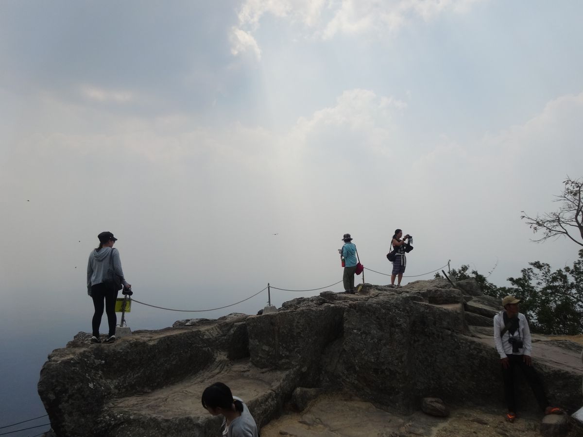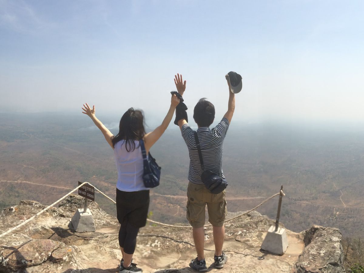 世界遺産のプレアヴィヒア寺院に行くツアーに参加しました。朝ホテルまで迎えに来てもらい3時間ぐらい車を走らせ途中4WDの車に乗り換え20分程でプレアヴィヒアの山頂に着きました。道はかなりボコボコで乗り物酔いする人は酔い止めを飲んだ方がいいです。4WDは荷台に乗ったのですが風が気持ち良く、アウトドア派ではない私にとっては貴重な体験でした。プレアヴィヒア寺院は思ったよりも広かったです。日差しを遮るものが無い場所なので紫外線対策はきちんとした方がいいです。第一回廊から順に第三回廊まで順に上がって行きましたが遺跡自体はかなり崩壊し所々補強がされていました。また急な階段が多いので履きなれた靴で行った方がいいです。そして第三回廊の先の崖から見る景色は口コミ通り絶景でした。広大な土地を独り占めした感覚になります。もやが掛かってしまっていたのが少し残念でしたが、時間のある方はぜひ足を運んでみる価値はあると思います。