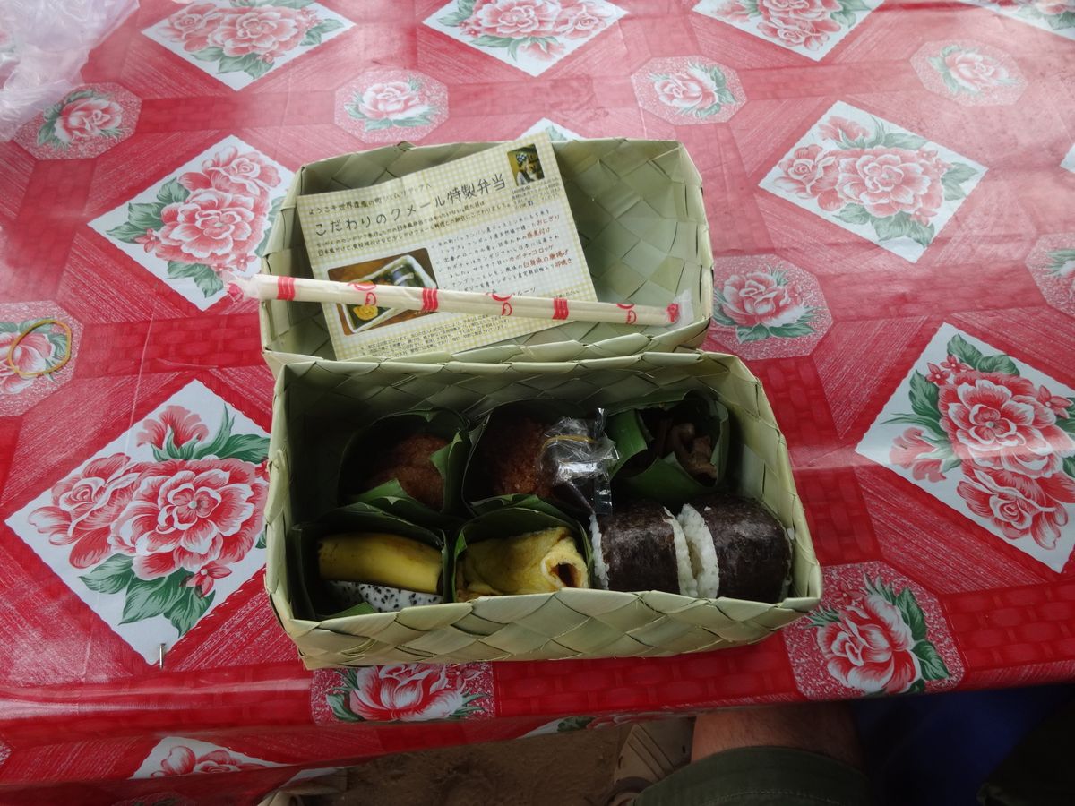 日本人の方が作っているらしきお弁当、クメール料理と日本食を融合させてものらしいです。おいしくいただきました。