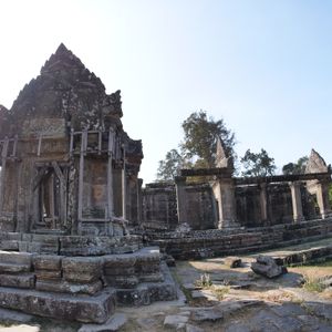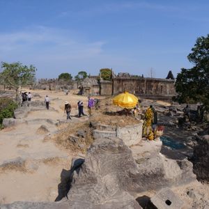 アジア圏でコロナウイルスが騒がれている2月22日、日本人ばかり7人(ホテル2か所で私達夫婦含め3組をピックアップ)で行ってきました。ソカさんという日本語堪能な女性ガイドさん(要所でたくさん写真撮っていただきましたし、バスの揺れや暑さに対しての気遣いなど細かい対応してくれる日本人向けの良いガイドさんです)の案内でしたが、観光ガイドだけでなくカンボジア一般市民の事情などもたくさん教えていただきとても内容の濃いツアーでした。マイクロバス(VIP席とあったのは25人乗りぐらいのバスに7人だったからかな?乗り心地は微妙でした)で90分ほど走ったベンメリア遺跡は、乾季なので木の葉や苔などほとんどなかったにもかかわらず『天空の城ラピュタ』の雰囲気アリアリ。雨季ならもっと木の葉や苔などの緑で綺麗なんだそうですが十分満足できるものでした。そこから更に2時間ほど走り小さな個人商店で食堂を借りて(飲み物1本購入する条件あり)弁当タイム。なるほど皆さんのレビューにあった通りの弁当でしたが(笑)現地のお弁当事情を知るにも良い経験になりました。プレアヴィヒア遺跡は『天空神殿』らしくガイドブックに載ってる通りの絶景でした(山頂へ上がるために乗り換える4WDも荷台に乗りましたが動画を撮りながら乗れましたので、それほど酷いものではありませんでした)。帰りはシェムリアップのホテルまで3時間半以上かかり皆さん道中疲れて爆睡(道路事情が悪いのと、そこそこにスピード(100キロぐらい?)出すため時々バスがドカン!!と跳ねて目が覚めます・汗)されてましたが、全員『遠いけど来た値打ちあった、よかった』との感想でした。ソカさん、運転手さん、どうもありがとうございました。