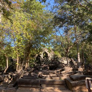 ベンメリアは、まさにラピュタの世界そのままの神秘的な場所。1000年も前にとても精巧に石を削って作られた巨体な回廊と、それを覆いつくすジャングルの木々が独特の空気を作り出しています。クバールスピアンは、山の上にある川底に彫られた彫刻。たどり着くまては予想していたより遥かにアップタウンのあるハイキングなので、それなりに体力いると思います。雨季だったら滑りやすいと思うので注意してください!