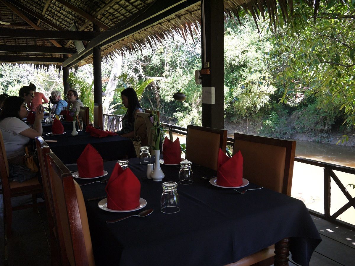 昼食はストゥントロチアという川沿いのレストランで、バナナの葉入りサラダ等を食べました。2人で3皿のセットメニューでしたが、人数が増えると、一皿の量が増えるのではなく、品数が増えるようでした。どの料理も美味しかったし、トイレも綺麗でした。
