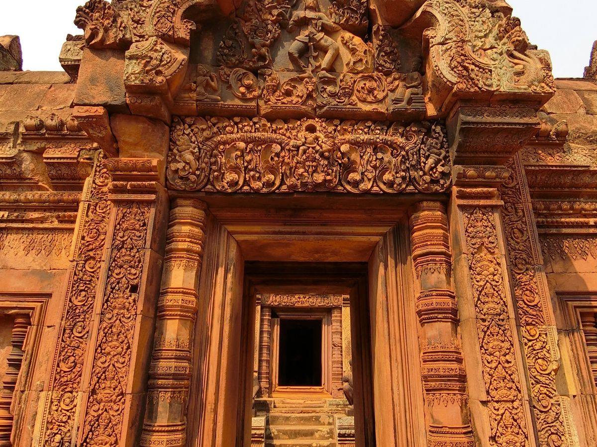 バンテアイスレイはこじんまりとした遺跡ですが、砂岩に施された細かな彫刻には