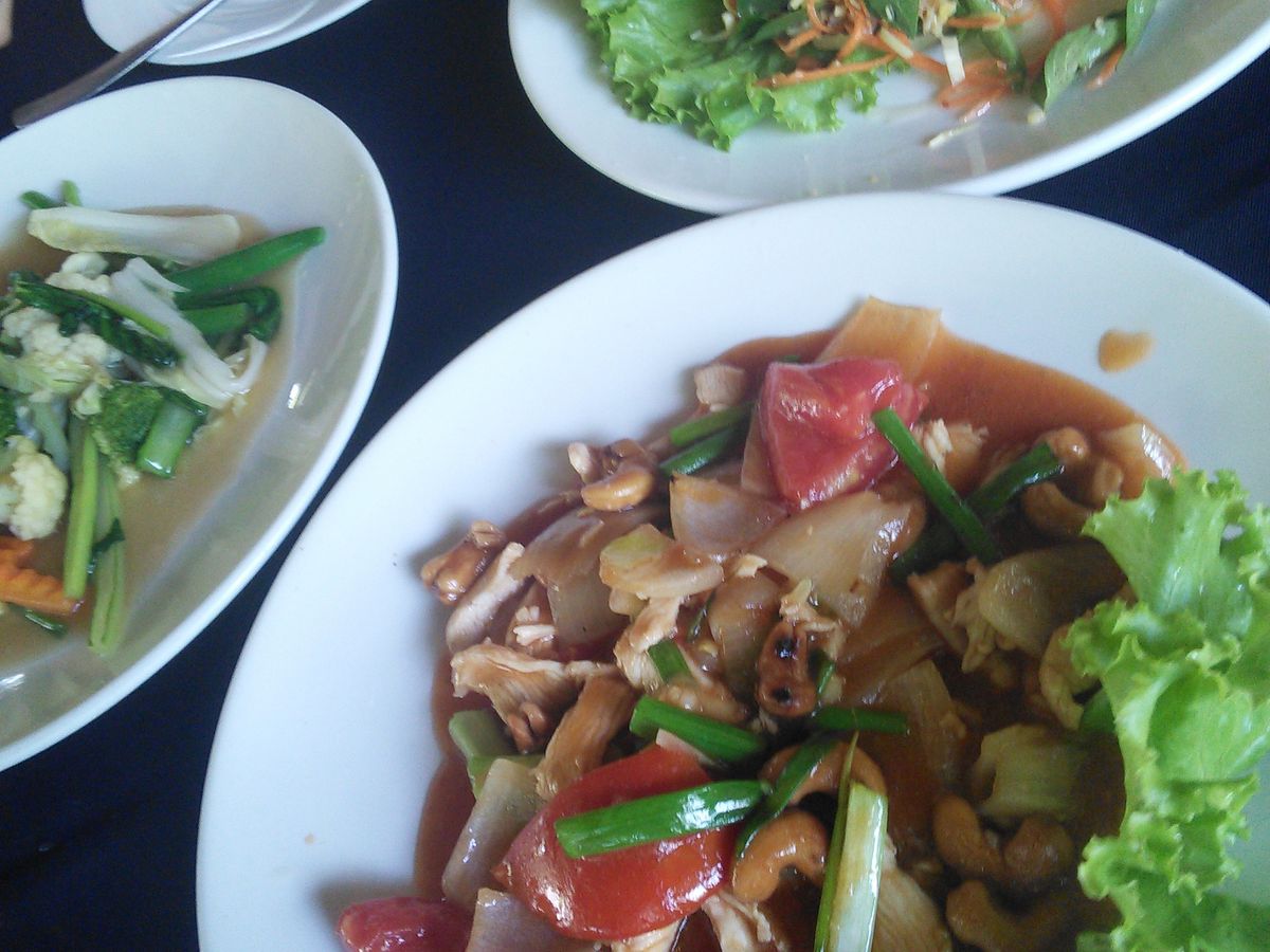 バンテアイスレイとベンメリアの間に昼食をとる予定でしたが、お腹がすいて無かったので両遺跡見学後に昼食をとるよう予定を変更してもらいました。ガイドさんが、何度も「お腹がすかないですか?大丈夫ですか?」と心配してくれたのが印象に残っています。料理は、辛くもなく日本の味付けに似ていました。特にタマネギの入った酢豚のような料理が美味しかったです。