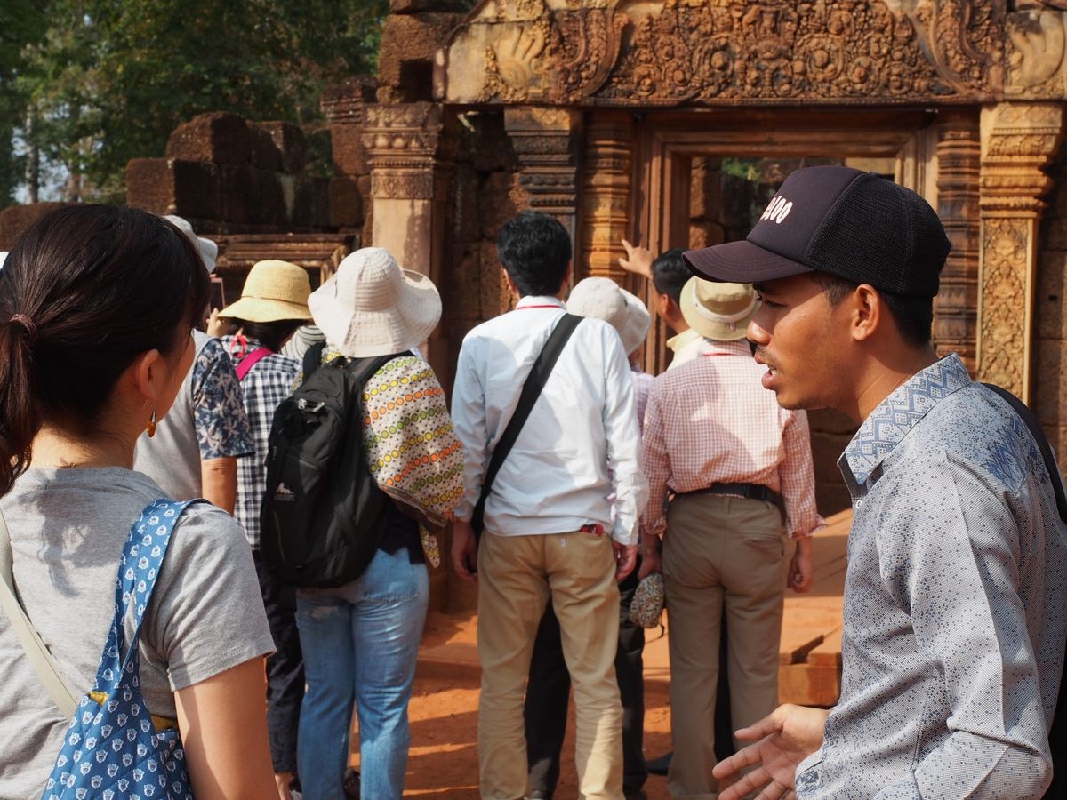 ガイドさんはカンボジアの環境局?みたいなとこの試験を通った人がガイドしてくれます。オプショナルツアーの会社から派遣されてくるのではないみたいです。前日違う会社でも同じ制服を着たカンボジアの方がガイドしてくれました。