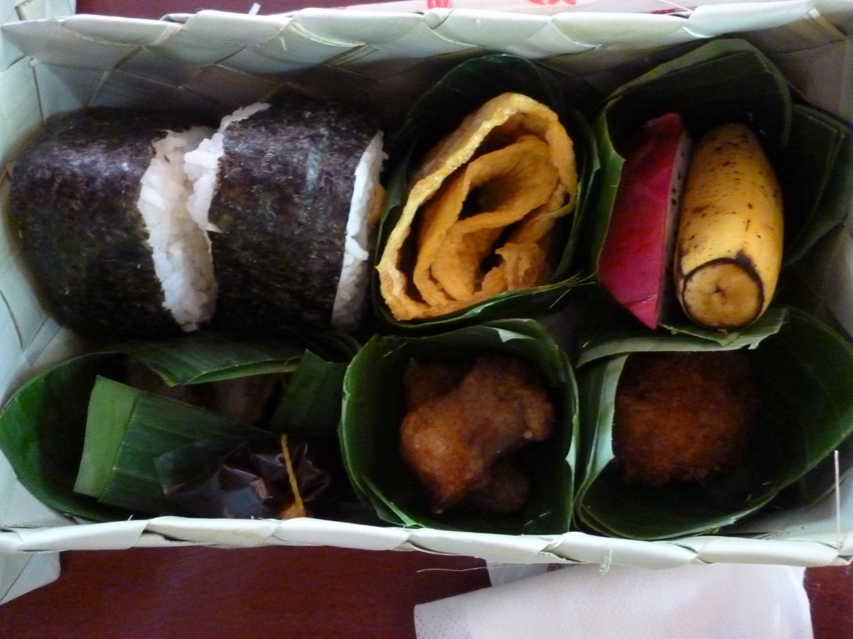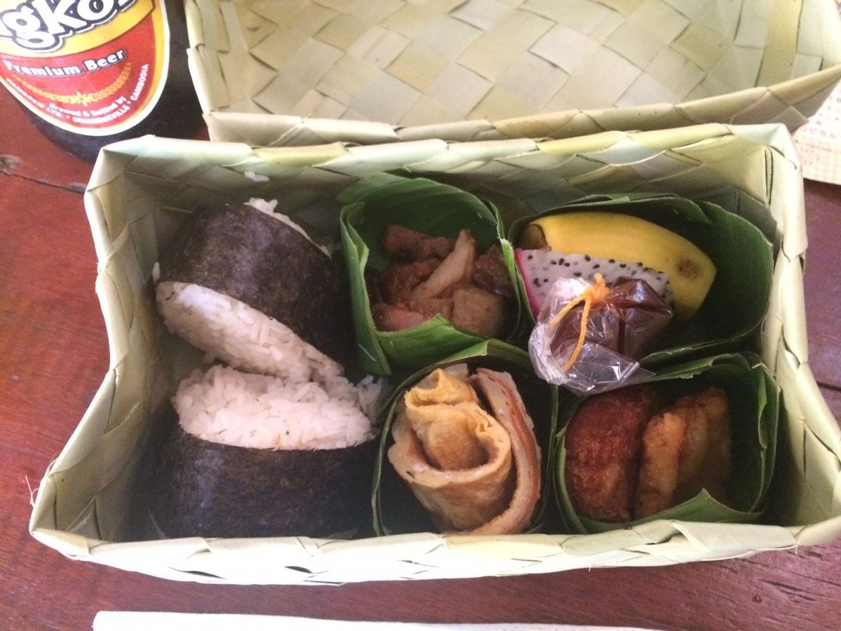 ・プノンクーレンを見学したあとに昼食だったのですが、長野のクメールレストラン監修の和食メインのお弁当でした。味は悪くはないのですが、この弁当ならばローカルの料理を食べたかったです。。。