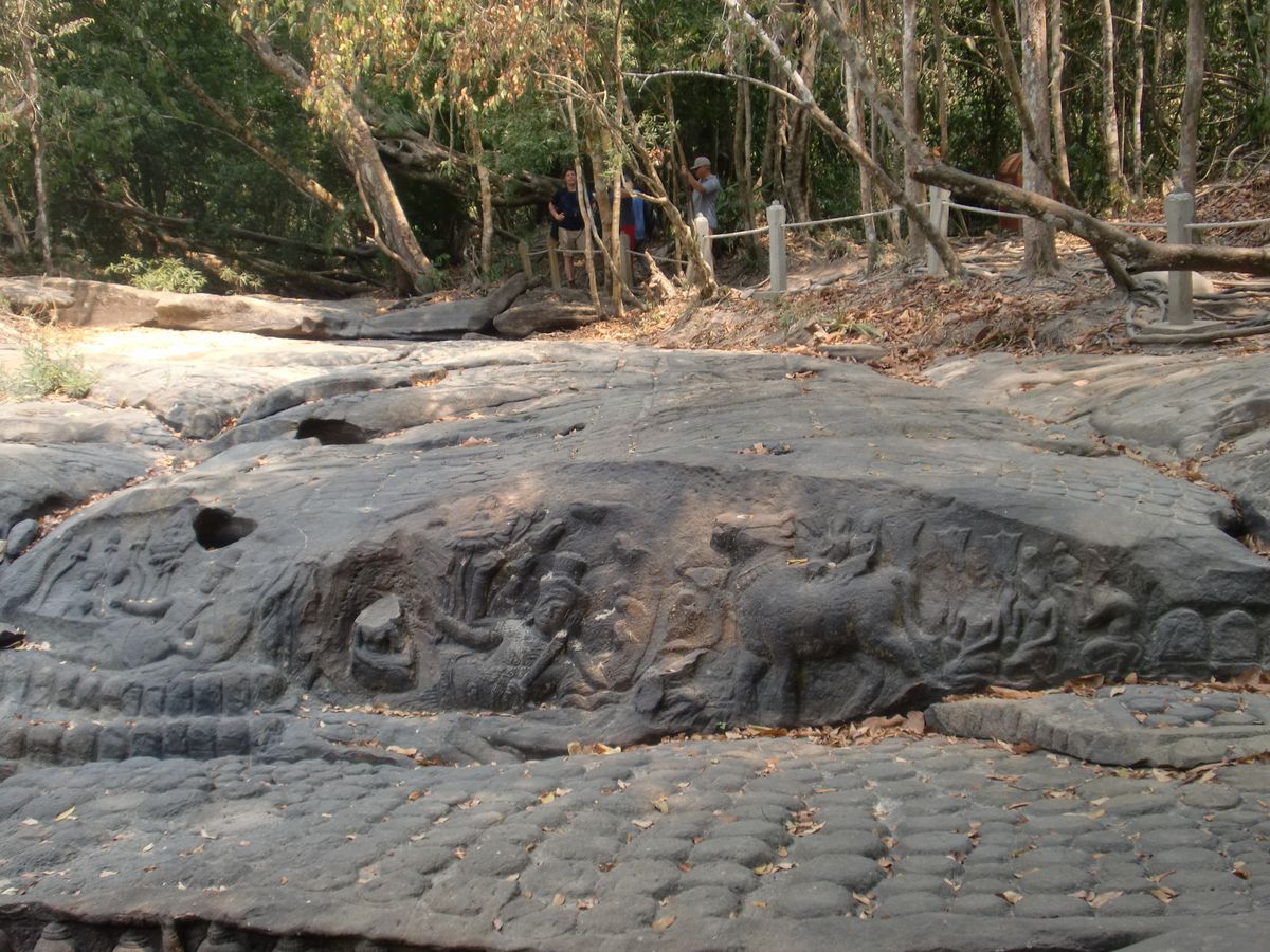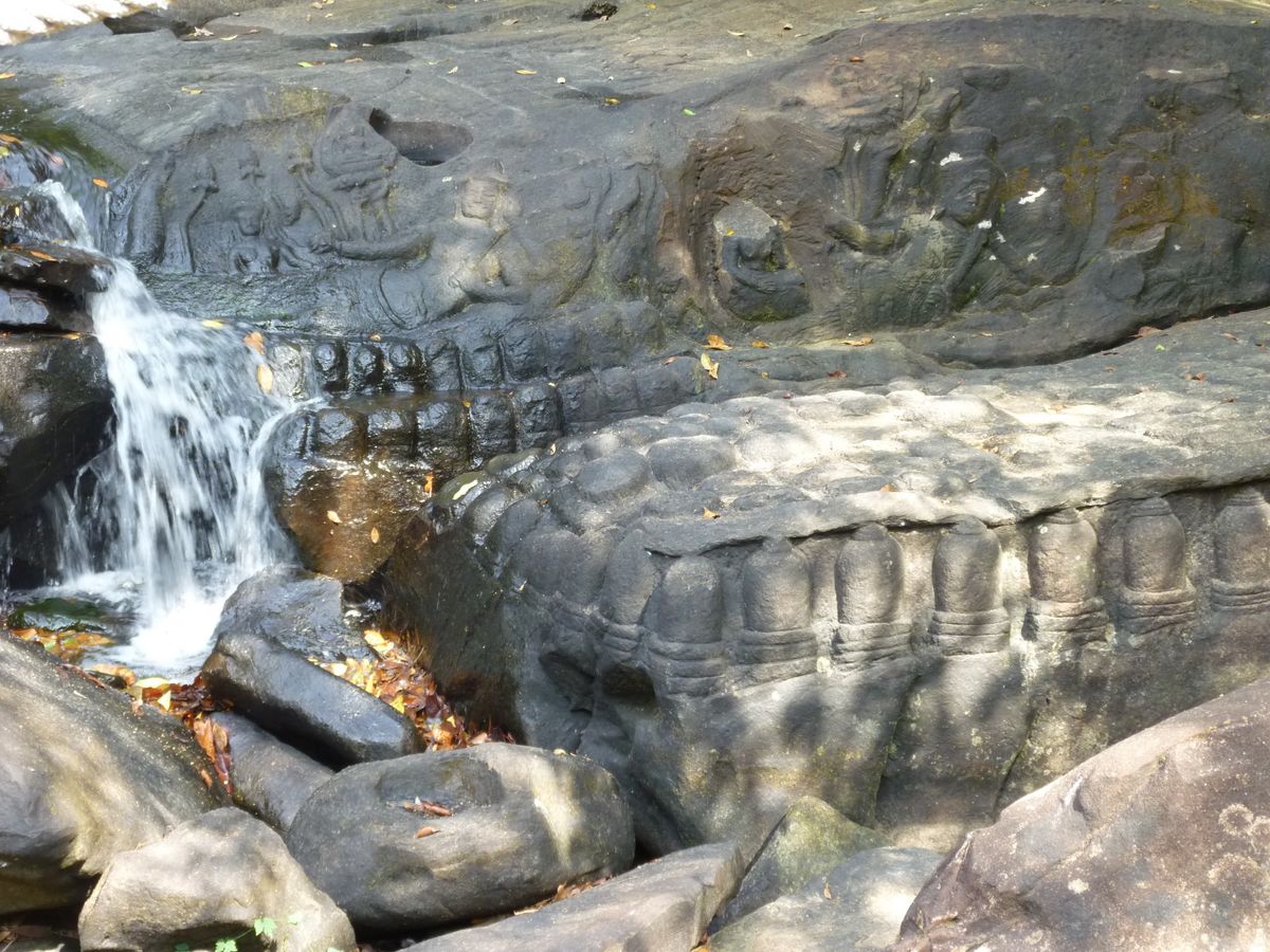 でも、雨季も水量が多くて濁っていると、まったく見えないというし、最適な季節って短いみたい。乾季は彫刻がはっきり見えるし、川底に降りて、滝の前まで行けるので、これはこれで楽しいです。この状況を知った上で、雨季にまた来てみたい。