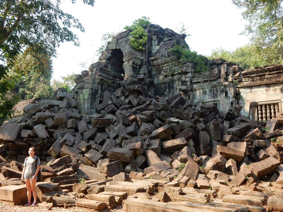 郊外にこんなに素敵なところがあった。山を特1500も登ったところにある川底の遺跡もいいが、特にペンメリアは壊れた遺跡を上から見る構造になっているので幻想的でちょっと他の遺跡とは異なり新鮮だった。ただ連休という事もあってか、観光客の数が多くマナーを知らない外国人でいっぱいだったのが残念。コースもメリハリがあって面白いし、移動時間は少しかかるが、逆に郊外の風景を見ることによりカンボジアの方々の生活も感じることができた。是非また訪れたい場所である。