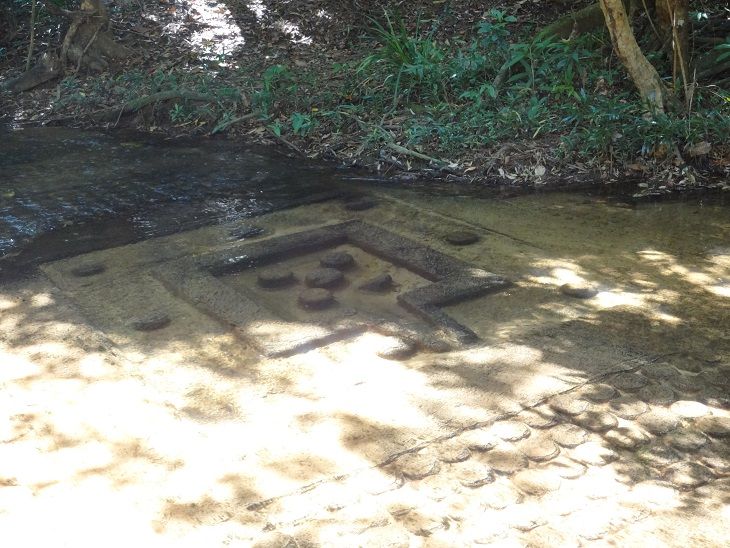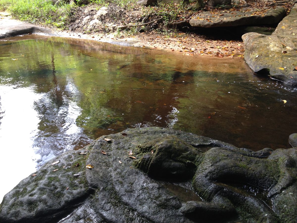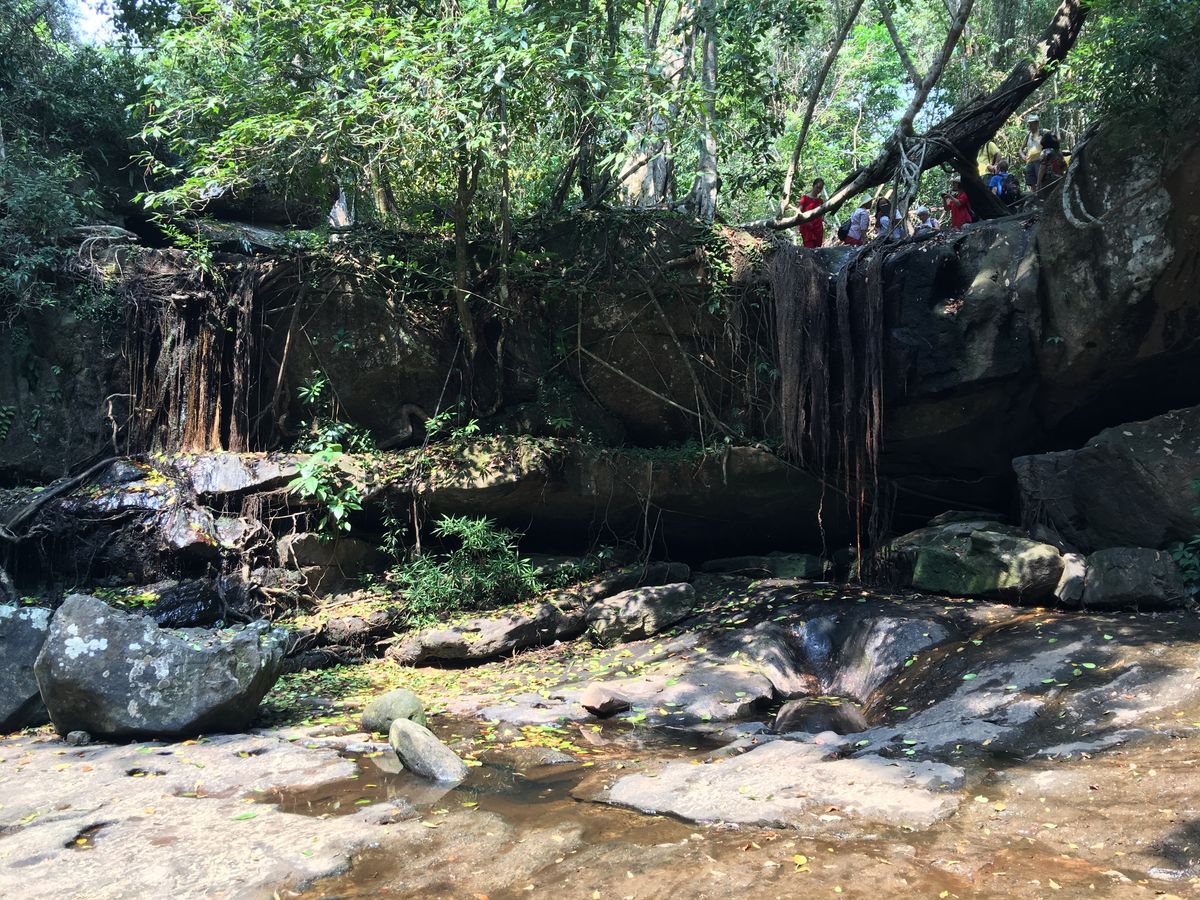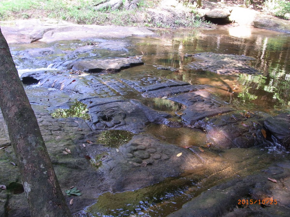 最初はクバールスピアンへ。岩に手をついて登ったり、普段運動不足の私にとってはなかなかハードでした。雨季であれば特に、軍手はあった方がいいと思います。山を登ること約30分で水中遺跡に到着。ガイドさんの丁寧な説明を聞きながら、じっくり鑑賞できました。