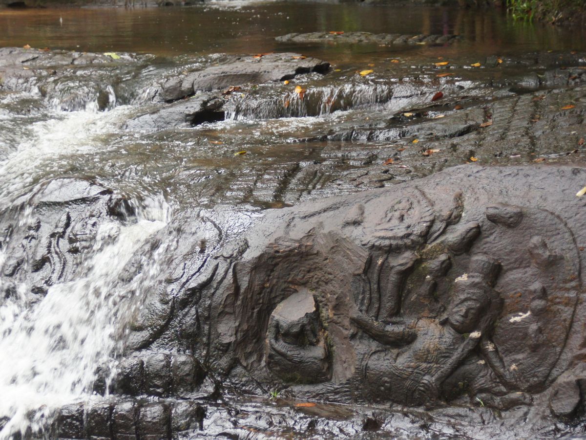 クバールスピアンは、片道1.5キロの(私としては)やや急な山を往復するので、少し心構えが必要ですが、着くと、細かい彫刻の上を水が流れて、素敵な空間でした。