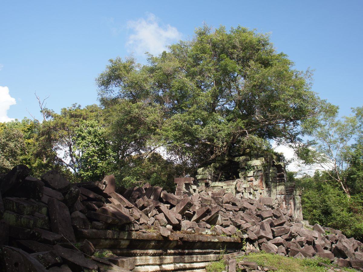 ベンメリアを観たくてこのツアーに決めました。想像以上に大量の石が崩れたまま数百年が経過し、そのスケールの大きさに感動しました。天空の城ラピュタのモデルになったスポットで、皆が順番に崩れた石に腰を掛けて、ツアーガイドのチャイさんに記念写真を撮っていただきました。山の上にある川底のレリーフや苔に覆われた岩の珍しい風景が観れたのは良かったのですが、日頃の運動不足で前日のツアーの歩き疲れを引きずったままに、さらに山登りをしたことで、久しぶりに軽い筋肉痛を味わいました。これも旅の良い思い出です。チャイさんは数百回ガイドで登っていらっしゃるそうで、山道をサンダルでスタスタ歩かれていて流石だなと思いました。ベテランガイドさんで安心して楽しめました。移動途中の農村の生活風景が観れたのも良かったです。お世話になり有難うございました。
