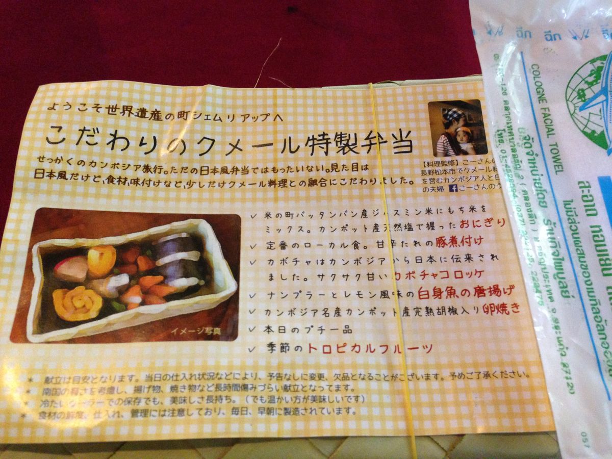 ただ「お弁当」が残念でした。カンボジア料理はとても美味しいので「日本風」にしなくてもなぁ・・・。と思いました。量も少ないかも?