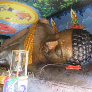 次にプノン・クーレンでは、小滝、大滝、プリヤ・トム寺院へ。お賽銭をガイドさんが購入し、一緒に数ヵ所の箱へお祈りしながらお札を入れていく体験も出来ました。涅槃仏や仏教、ヒンドゥー教の神が祀られており、インドの観光客も多いとの事。