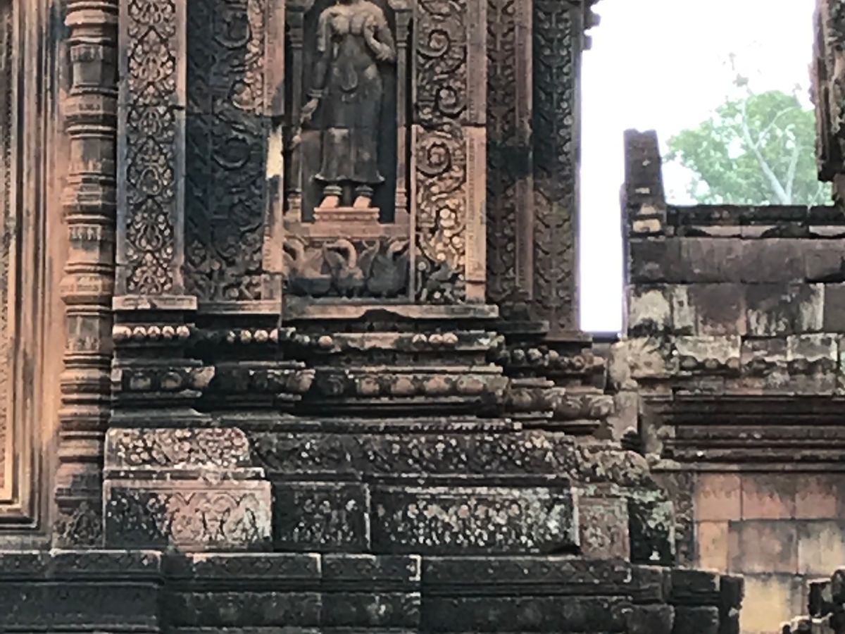 暑い遺跡巡りが多い中、これは、森林の中を歩くので気持ちがよいです。そして、川底に彫られたたくさんのリンガ(ヒンズー教の神様のシンボルのようなもの!?)などの彫刻が、アンールワットなどとはひと味違った雰囲気で味わえます。12月に訪れて、水量がちょうどいい感じでした。これ以上だと遺跡が見えにくい気がします。プノンクレーンは水量が多く、川底の彫刻が少し見えにくいのが残念でした。でも、滝の気持ちよさで暑さも吹き飛びます!地元の人たちが気持ち良さそうに水浴びする様子が印象的でした。バンテアイ・スレイは、6回目なのですが、今までと違って午後なので、人も少なく、涼しく、ゆっくり見て回れました。
