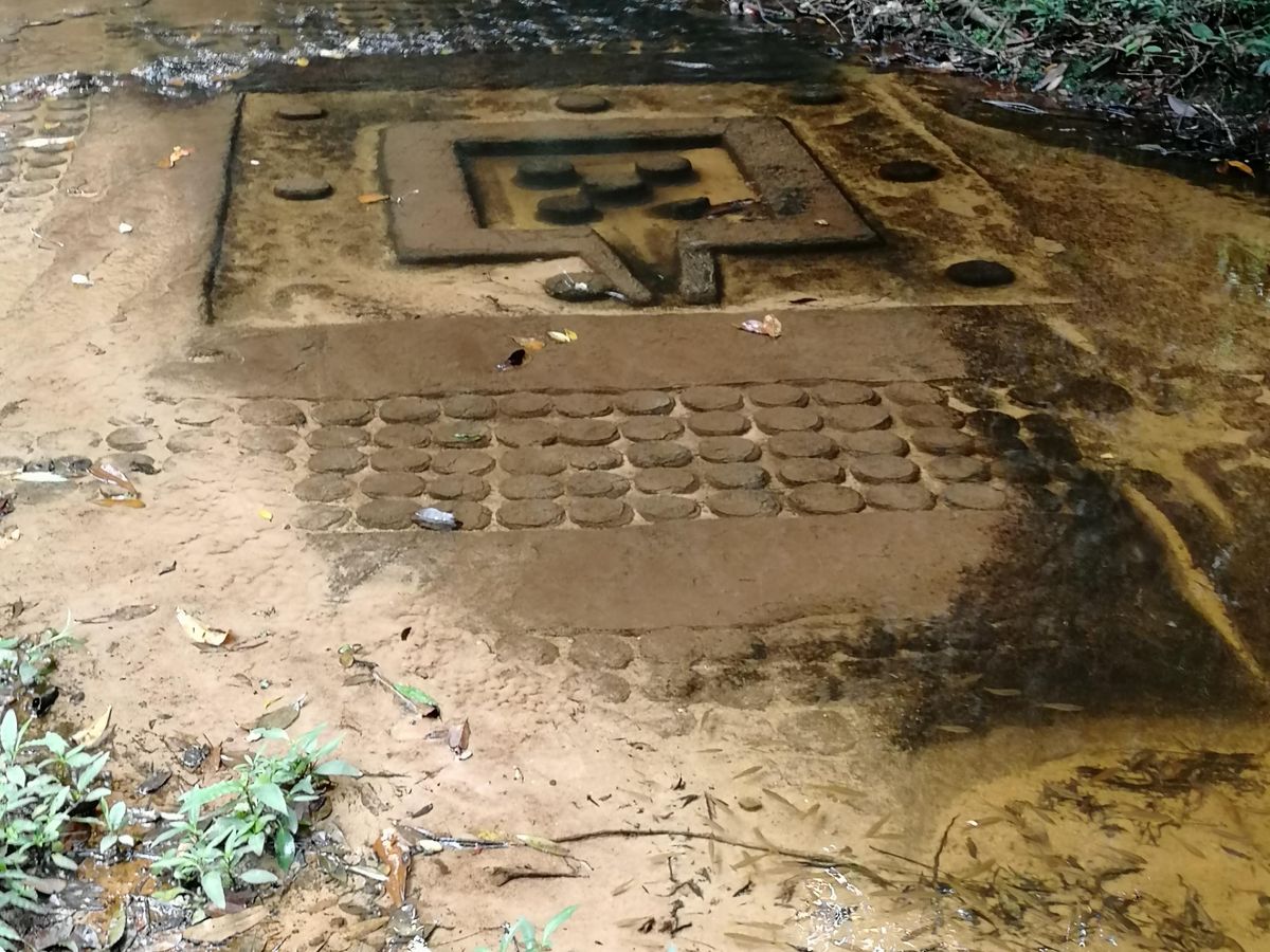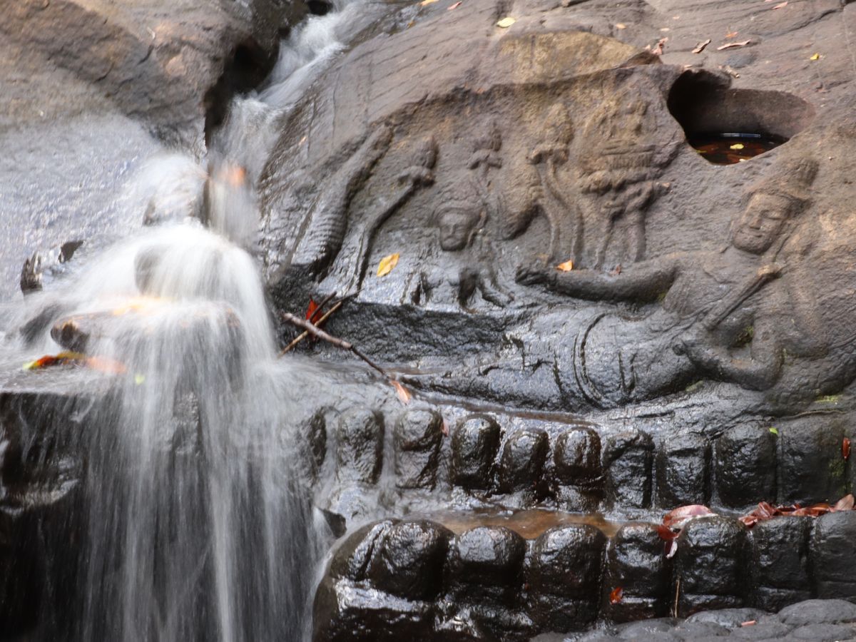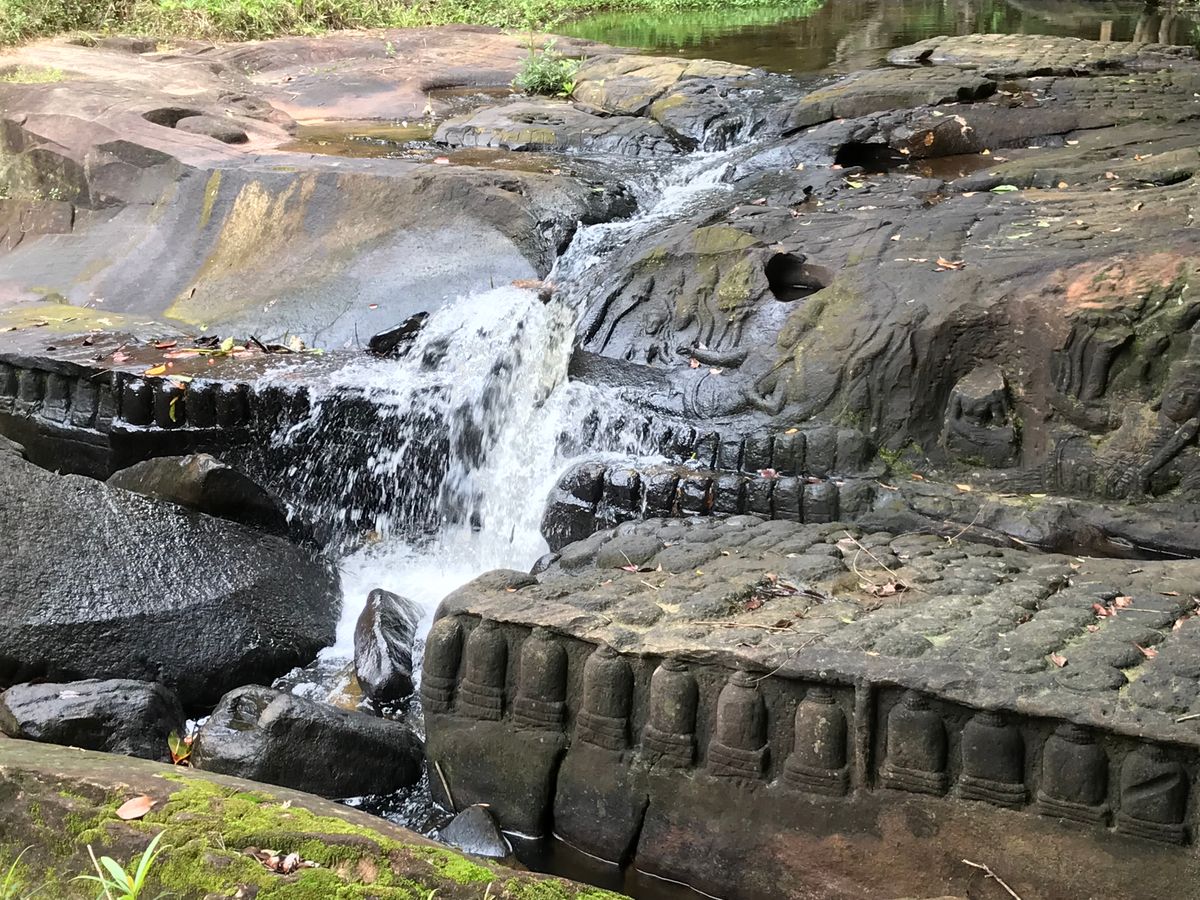 ご参加いただいた雨季の期間はお写真のように川底にきれいな彫刻がみれるので雨期ならではの遺跡(乾季、特に3月、4月は干上がっていることがあります)ですね。