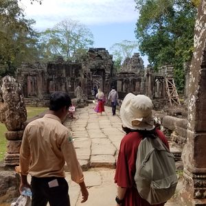 アンコールトムとその周辺の遺跡を、早朝料金追加と、1時間追加して5時間カーチャーターとガイドしていただきました。追加料金込みでも、本当にお願いしてよかったと思える遺跡巡りができました!混み合う時間を避けたためゆっくり遺跡見学できました!タヴァンさんという可愛い女性ガイドさんとおしゃべりが楽しく、細やかな気遣いが嬉しかったです。次の日も4時間でバンテアイスレイ観光をお願いしましたが、他で提示された料金よりもかなりお安く、即決でした。帰りに村のスイカやパームシュガーの直売所?に寄ってくださって、街中よりもお得に買い物ができて満足!スイカを奢っていただいたり…タヴァンさんと別れる時は寂しかったです。シェムリアップ 遺跡巡りのチャーターやガイドさんはどこもお値段お高めの印象でしたが、ここは今までの東南アジアのガイドさんの中で一番良かったです。とてもいい思い出になりました。ありがとうございました。