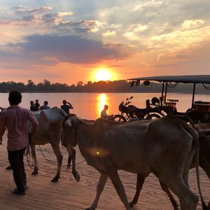 夕日が沈むのを背景に牛が歩いているのが何とも言えない素敵な1枚ですね。
