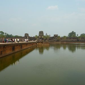 次にアンコールワット。午前中は逆光になり有名な蓮池に映り込む姿が見れないため通常のツアーは午後になるので空いていてゆっくり観れ、第三回廊へもスムーズです。私は前回は午後に入ったし、今回も早朝に蓮池の映り込みは見たので、今度は逆に午前中に後ろから入ることにより、後ろ姿を観賞しました。後ろも凄く綺麗です!そして、前回上れなかった第三回廊(並んでいると夕日観賞に間に合わなくなるため)、案内されなかった歯を見せて笑うデバター、前回恥ずかしくてできなかったアプサラさん達との撮影、と私の希望に応えながら、その他のところも丁寧に案内してもらいました。二回目のせいか、予習復習ばっちりだったせいか、ガイドさんが良いせいか、今回はとても勉強になりました。