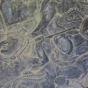 頼んだわけでは無かったのですが、今回のガイドは初日がベテランの男性と2日目が若手の女性で、いずれもガイドとしての知識や心遣い、日本語も十分のレベルでした。特に初日のベテランガイドは、アンコールワットについて、歴史、神話、文化、民族、建築、天文学という目線で遺跡を何度も現地現物しているだけで無く、数年に渡る独自調査と実測(像や柱、レリーフの数、月と星、遺跡の方角や位置と距離の関係など)、文献調査などをベースとした事実に基づく独自の推論を展開するなど、自分を含めたそっち方面が好きな人には非常にマッチした人選かと思いました。