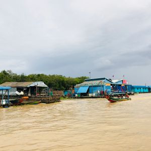 お昼は11時過ぎにガイドさんお勧めの遺跡近くのレストランに行き、アモックの美味しさに感動しました。食後はハンモックに揺られて少し休憩しました。ツアーの時間配分が素晴らしく、ランチを早めにしたことで、アンコールワットはとても人が少ない中でゆっくり観て回ることができました。時間があったので、お土産で有名なアンコールクッキーの販売店に連れて行って頂きましたが、沢山試食があり、空港などよりも安い価格で販売されています。正直なところ、観光客向けの高い土産屋かと思っていましたが、美味しく品質もよいので、スーパーとかで売ってるクッキーよりもお土産として喜ばれると思います。アンコールワットからトンレサップ湖まで45分くらい時間がかかるので、涼しい車の中で休憩できました。トンレサップ湖では、ボートのチャーター(別途$20現地支払い必要)を手配して頂いており、値段交渉などせずに済みました。船に乗って水上での暮らしや引越しの様子などを観ることができ、とても興味深かったです。水上の学校で子供達が元気に走り回ってる姿が印象的でした。