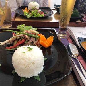 お昼はカンボジア料理のコース、夜はアプサラダンスを見ながらカンボジア料理のバイキングでした。