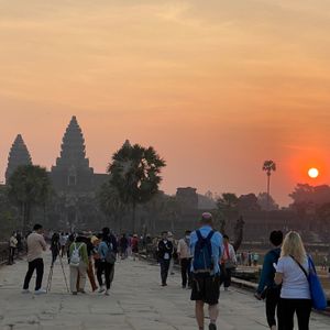 アンコールワットの朝日を見る為、朝はとても早かったですが、乾季ということもあり朝日はとても鮮やかで本当に感動しました。そのあとホテルに帰って朝食。ホテルでの朝食は楽しみにしていたので、ここは嬉しいポイントでした。その後またお迎えがあり、アンコールトムとタプロームガイドさんはたくさん写真をとってくれましたし、暑い中いろいろ歴史などを話してくれて、とても有り難かったです。昼食後、免税店かマッサージを選ぶ時間があったのですが(人数が多い為。少ないとホテルへ帰れる選択肢があるみたいです。)猛暑で日差しも強い中観光していた為、できればホテルで休憩したかった。その後アンコールワットの中を観光し、プレループで夕日を見ました。この時点でもうヘトヘト。夜ご飯はダンスショーを見ながらブッフェ。期待してなかったですが、ダンスショーもとても良く、ご飯も美味しかったです。とーーーってもハードで疲れますが、大満足のツアーでした。