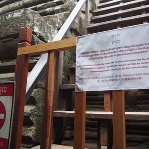 また、行程に書いてあるアンコール・トムの遺跡巡りですが、ライ王のテラスはほとんど見学できず端っこだけ見たくらい。もっと近くまで行ってじっくり彫刻を見たかった。ピミアナカスに至っては、そもそも立ち入らないので遠くから眺めたくらいでした。バイヨンの中央部は2020年1月から修復のため立ち入れなくなっているので、あの四面仏は間近で見ることはできませんでした。