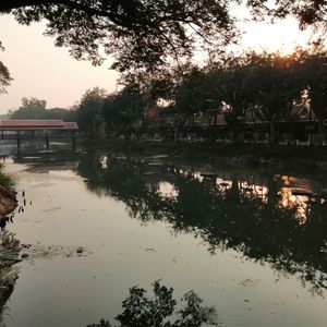 6.夕陽は綺麗に見えたが、その場所も単なる池の辺り、遺跡群が見えるわけでもなく、ただ1時間も、また地面に座って陽が沈むのを待つだけのもの。