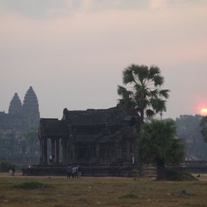 肌寒いなか、朝日に映えるアンコールワット。
