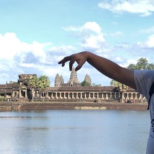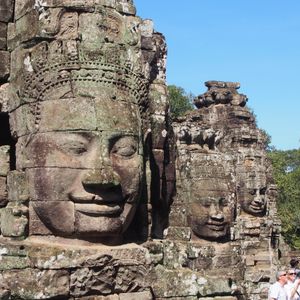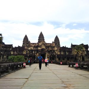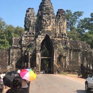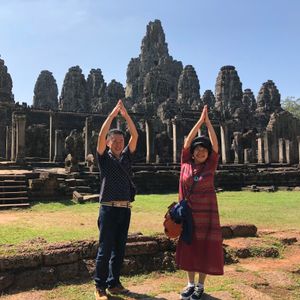 10/10雨季の終わりだったので朝日を見に行く時はパラパラ雨が降ってましたが、雨も上がり少し日が射すモノクロ写真の様なアンコールワットも素敵でした。一度ホテルへ戻り朝食、少し部屋で休憩ま出来ます。8時半にお迎えが来てアンコールトムの見学は良い天気になって青空が写真映えしました。ガイドさんはとても親切でアンコールワットを摘まんで見える写真を写してくれたり、ツアー客みんなのパノラマ写真を3ヵ所で写してくれました。それぞれ個性的な写真になっていてガイドさん最高です。お陰で友達が出来ました。すごく日本語が上手ではありませんでしたが、遺跡の説明も一生懸命して頂き良くわかりました。夕陽を見に行った時もベストスポットを教えてくれたからめっちゃ見映えする写真が写せました。ご飯はお昼、夜共に美味しかった(^o^)日本人の口に合っています。初めてのカンボジアが最高の旅になりました。ガイドさんにも本当に感謝しています。