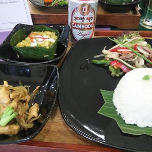 カンボジア料理を昼に食べられるし、夜は踊りと共にビュッフェでのディナーのため誰でも食べられる食事が。
