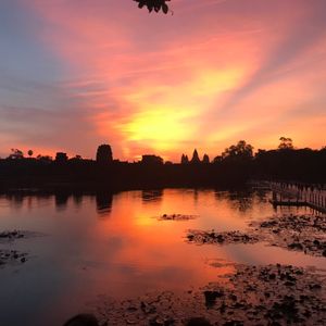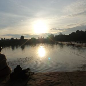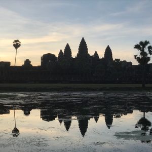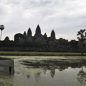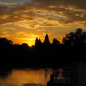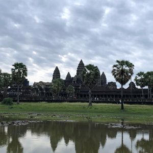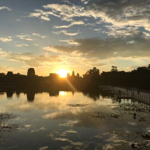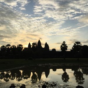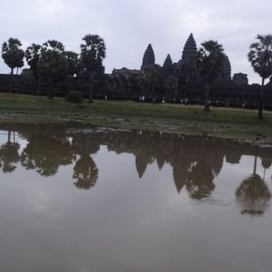 朝日は雨季の為、雨でしたが、それでも綺麗でした。アンコールワットが水面にうつるのは雨季しか見られないそうなので、水面にうつる姿を見れてとてもよかったです。
