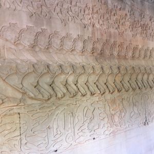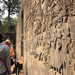 アンコールトムの遺跡は壮観。どうやって作ったのかという点については、説明してもらい、ようやく納得したが、それをあの高さまで、また、何十年にもわたって、また、何人もの王がそれぞれ別に造らせたということを考えると、ものすごい権力をもち、また労力をつぎ込ませたことが想像できる。バイヨンはその点では圧巻。フォトスポットを教えてもらえたのは良かったが、一周10分はちょっと短い気もする。また、像のテラスとライ王のテラスはさらっとながして移動してしまったが、もうちょっとゆっくり見たかった。ピミアナカスは記憶にない…。暑さでもうろうとしてたか。