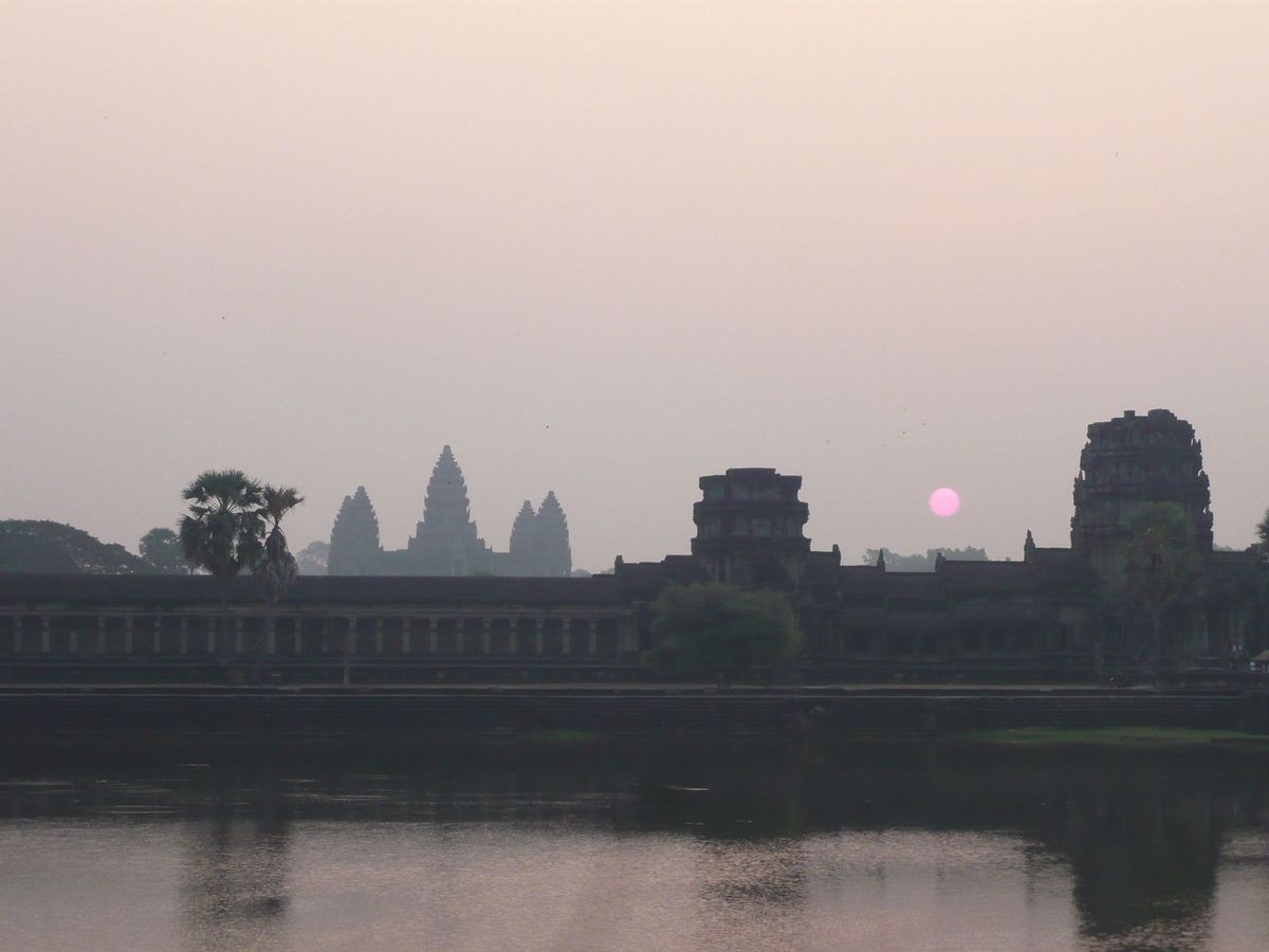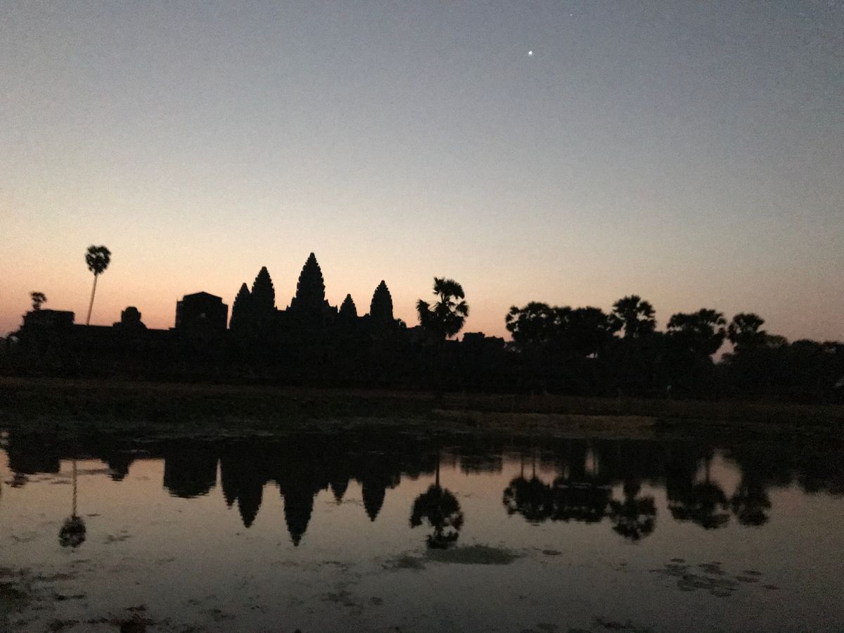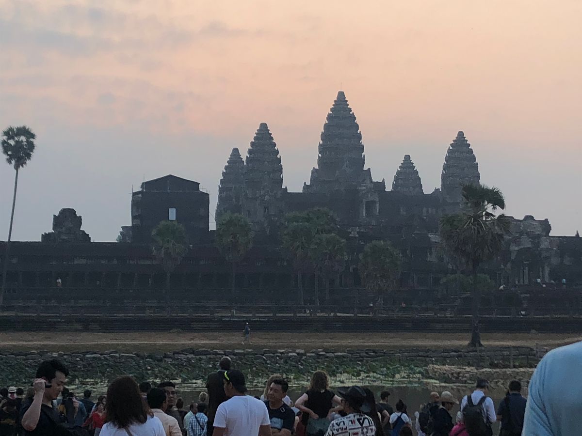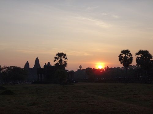 あと、ぜひ情報提供させていただきたいのですが、アンコールワットの朝日観賞は、西参道、堀の手前からの観賞となりますので、聖池の手前からの観賞を期待している方は別のツアーの方が良いと思います。